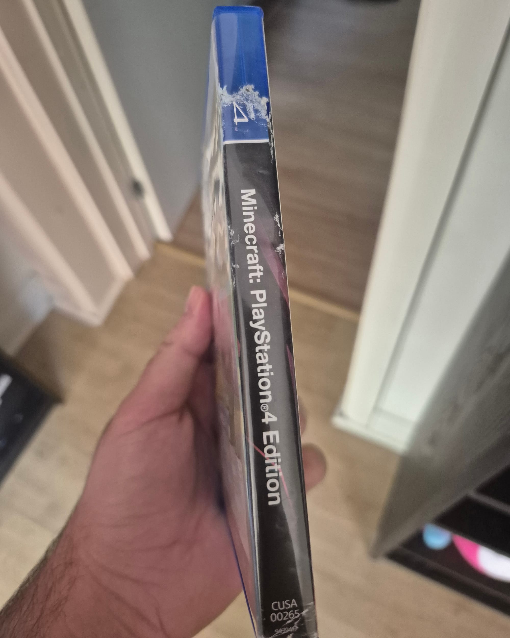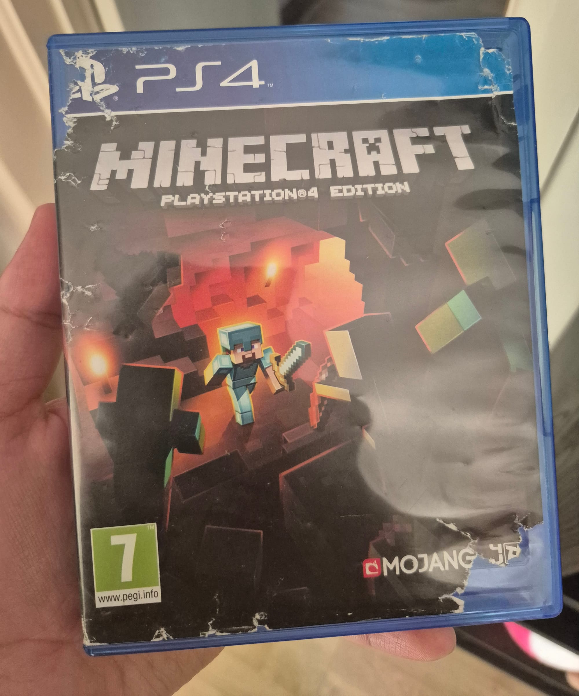 One morning, we got up to find several wrapped gifts had been shredded during the night. No guesses as to who caused it, but one of these gifts was a PS4 copy of Minecraft. Clearly, the boy was protesting Notch's politics, or maybe the concept of voxel games as a whole. Hard to say when he'd mostly just bark, but a stand was made all the same. The disc itself was fine though, just the case was damaged. Why get another when the main item still works, right?